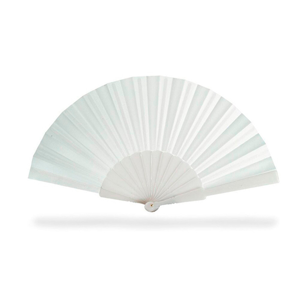 Abanico ABA promocional de tela, liviano y elegante, ideal para regalos corporativos personalizados en eventos y campañas.