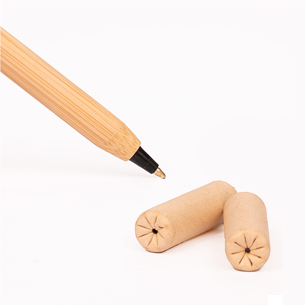 Fusión inteligente entre tradición y tecnología, diseñado para marcas que apuestan por la innovación responsable. Combina un cuerpo de bambú natural con cartón reciclado certificado FSC y GRS, integrando una punta de grafeno inkless que funciona como un lápiz eterno, eliminando la necesidad de recargas o afilado.