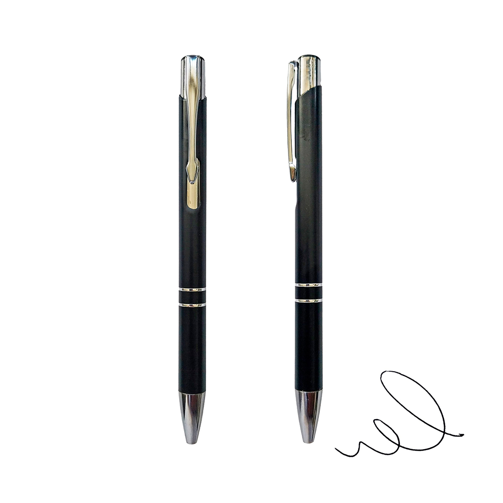 Opción elegante y profesional para regalos corporativos y uso ejecutivo diario. Su cuerpo metálico en color negro, complementado con detalles plateados, transmite sobriedad y calidad, ideal para marcas que buscan una imagen formal y distinguida.