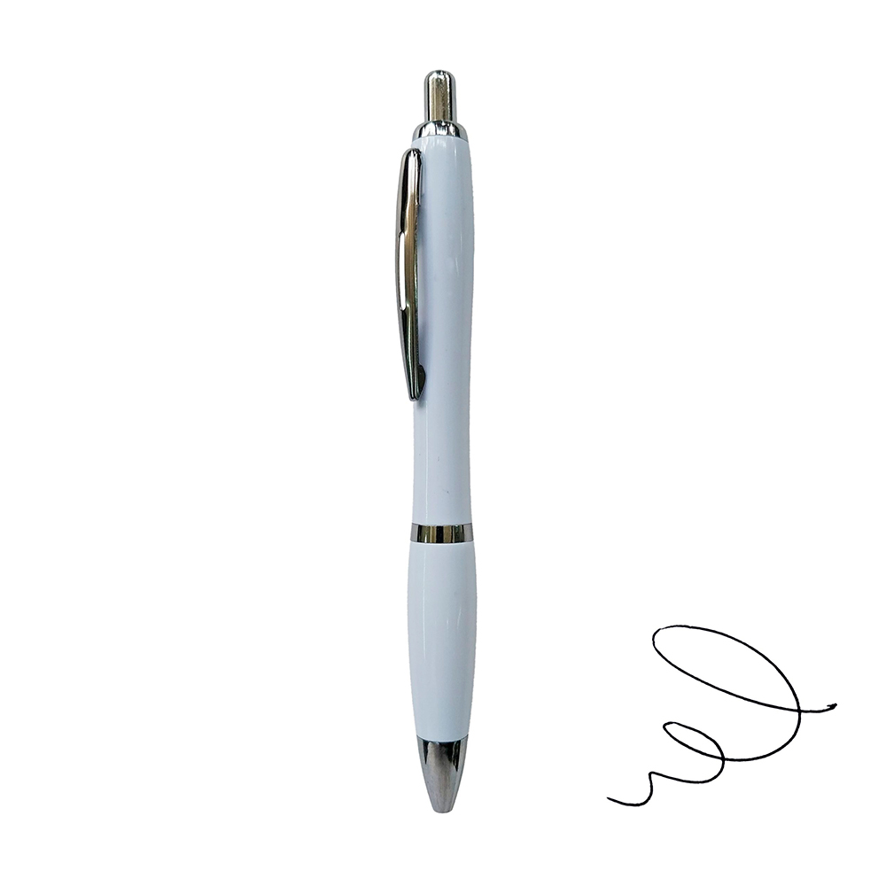 Bolígrafo plástico blanco BP253 con tinta negra, ideal para promociones y regalos corporativos personalizados.