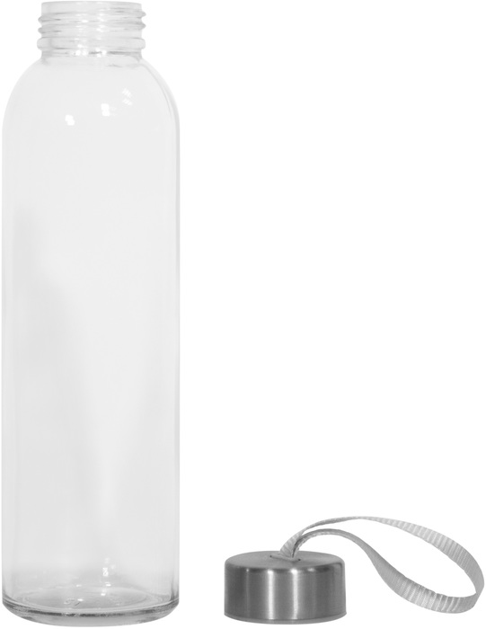 Botella de vidrio ANANÁ 500ml. Práctica, reutilizable y sostenible, esta botella ofrece una excelente durabilidad y claridad, permitiendo visualizar el contenido con facilidad mientras mantiene la pureza de tus bebidas, cuenta con tapa a rosca de acero inoxidable y cinta lanyard para fácil transporte. Sugerencias de impresión: impresión digital UV y grabado laser.