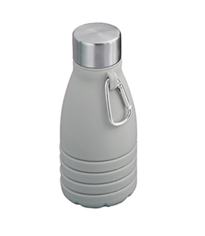 Botella plegable que reduce su tamaño a 17 cm cuando está vacía, ocupando un mínimo espacio en tu mochila o bolso. Boca de botella plástica. Tapa de acero inoxidable 201 y mosquetón de aluminio plateado. Para ajustar el tamaño de la botella, simplemente retira la tapa y ajusta la altura según tus necesidades. Medidas: Ø 7,5 x 25 cm. Capacidad: 500 ml. (desplegada).