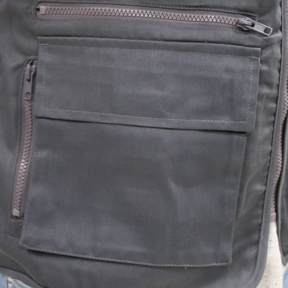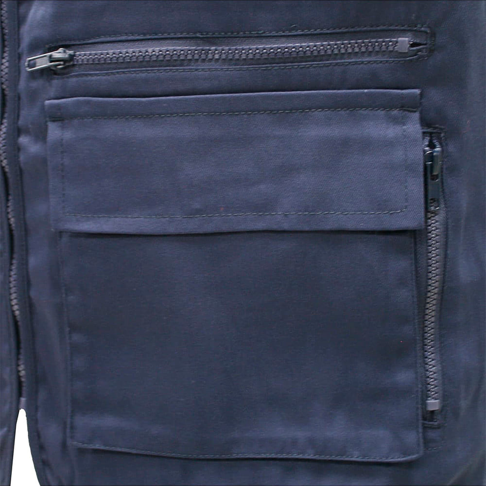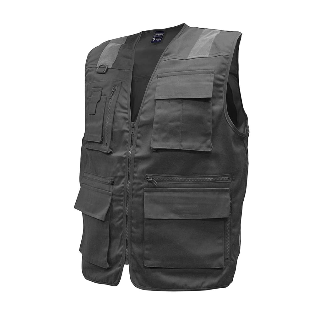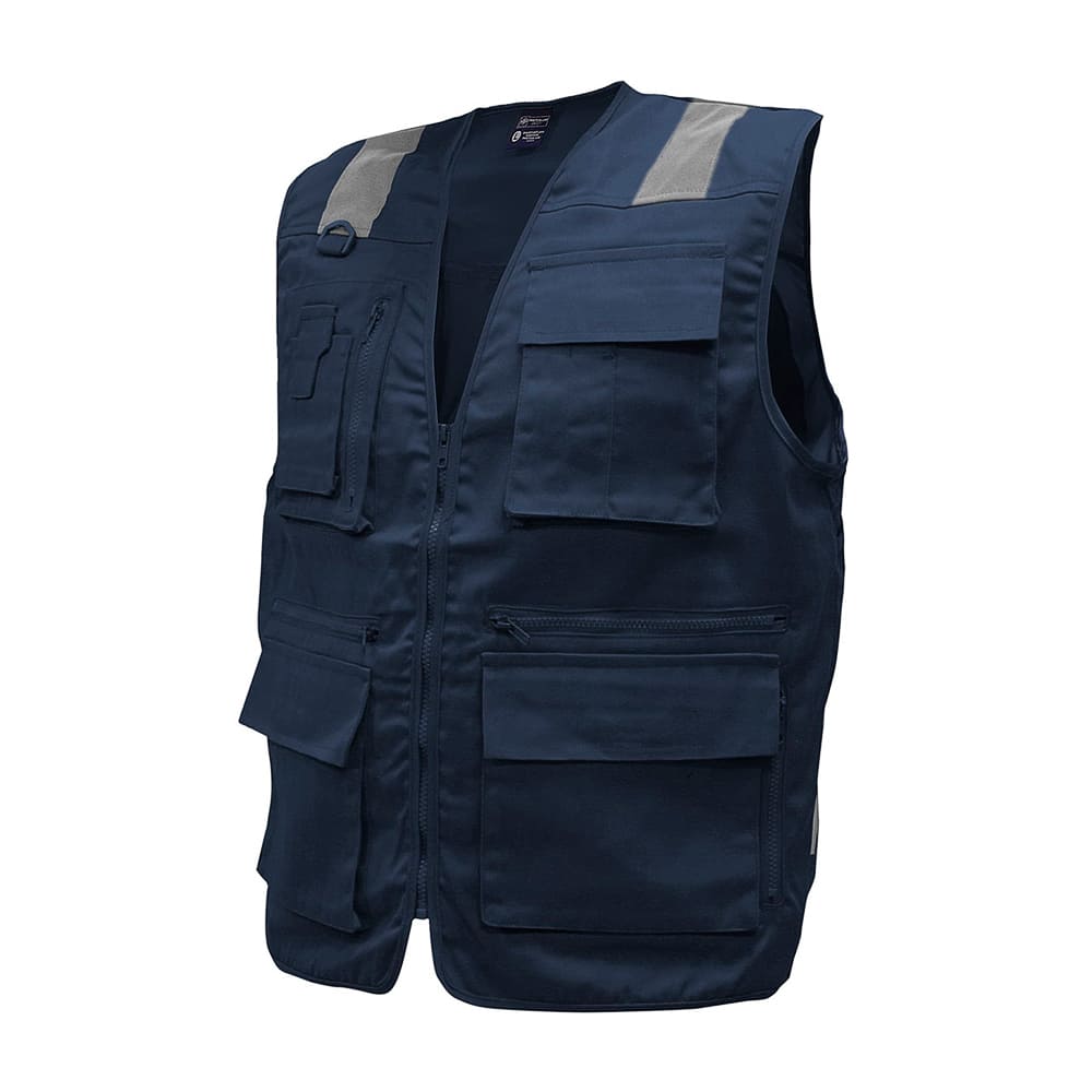 Chaleco geólogo RP365 de gabardina sin mangas, resistente y liviano. Ideal para trabajo en terreno y vestuario corporativo.
