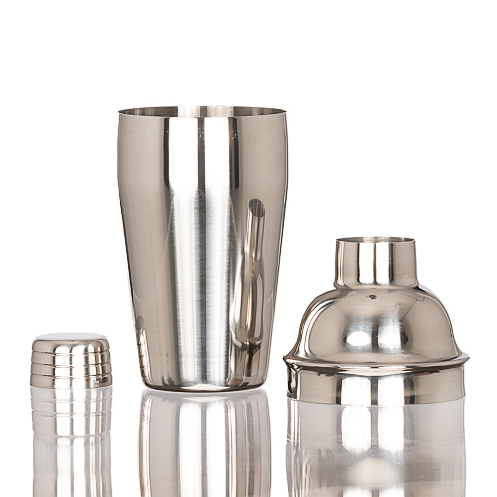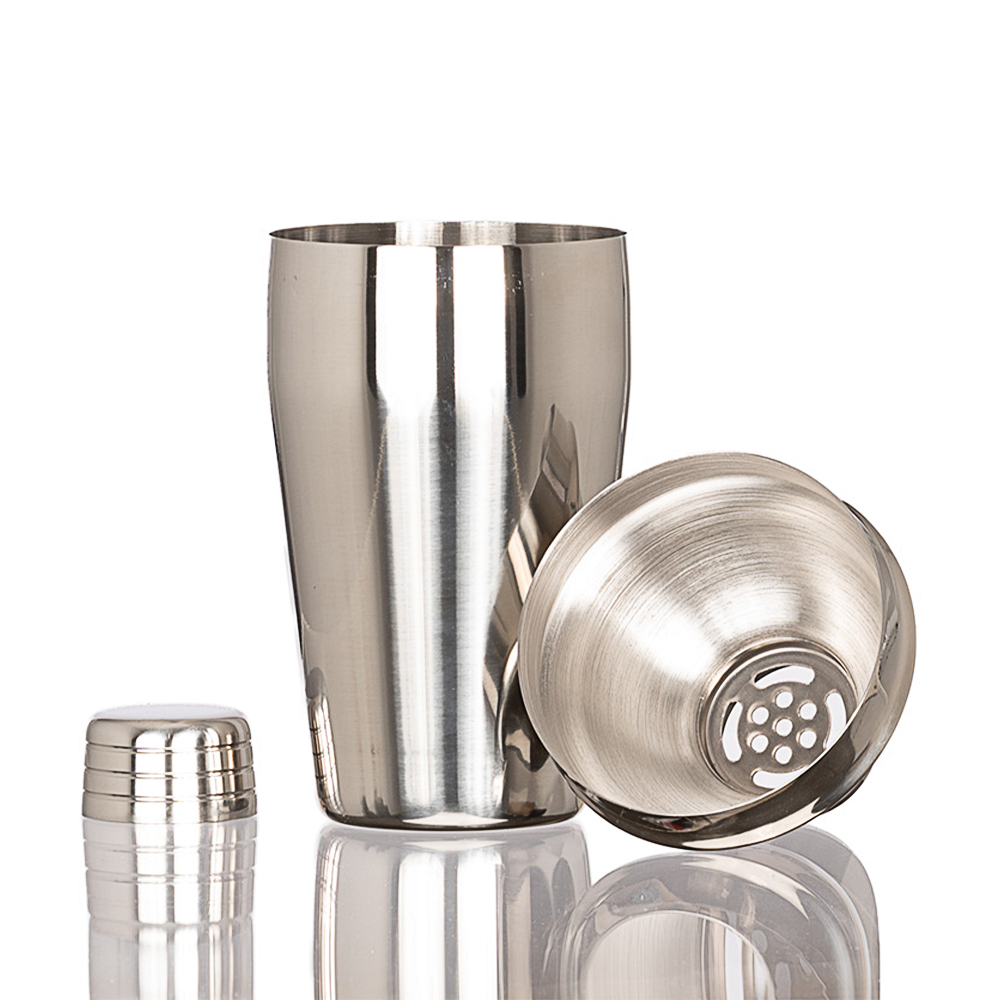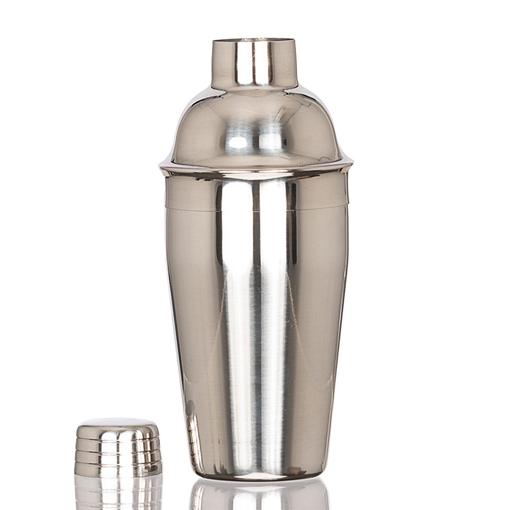 Coctelera metálica plateada de 500 ml en acero inoxidable SS304, BPA FREE, ideal para coctelería y regalos corporativos.