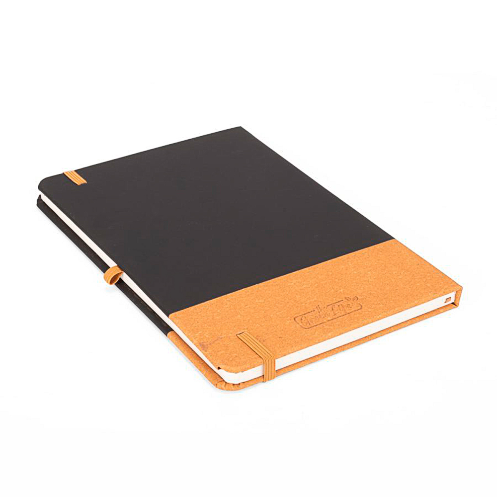 Representa el equilibrio perfecto entre diseño ejecutivo, funcionalidad y conciencia ambiental. Su tapa dura combina cuero reciclado en tono marrón con detalles en PU negro, logrando una estética sobria y profesional, ideal para entornos corporativos, reuniones de alto nivel y uso diario en oficina.