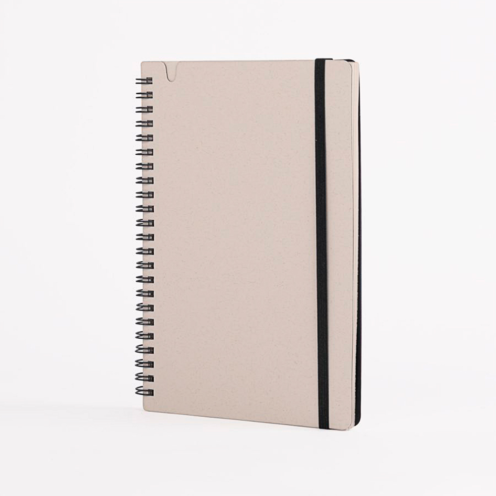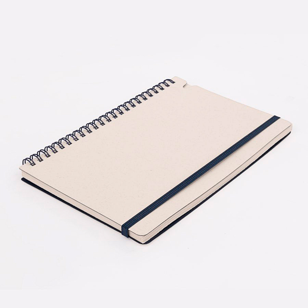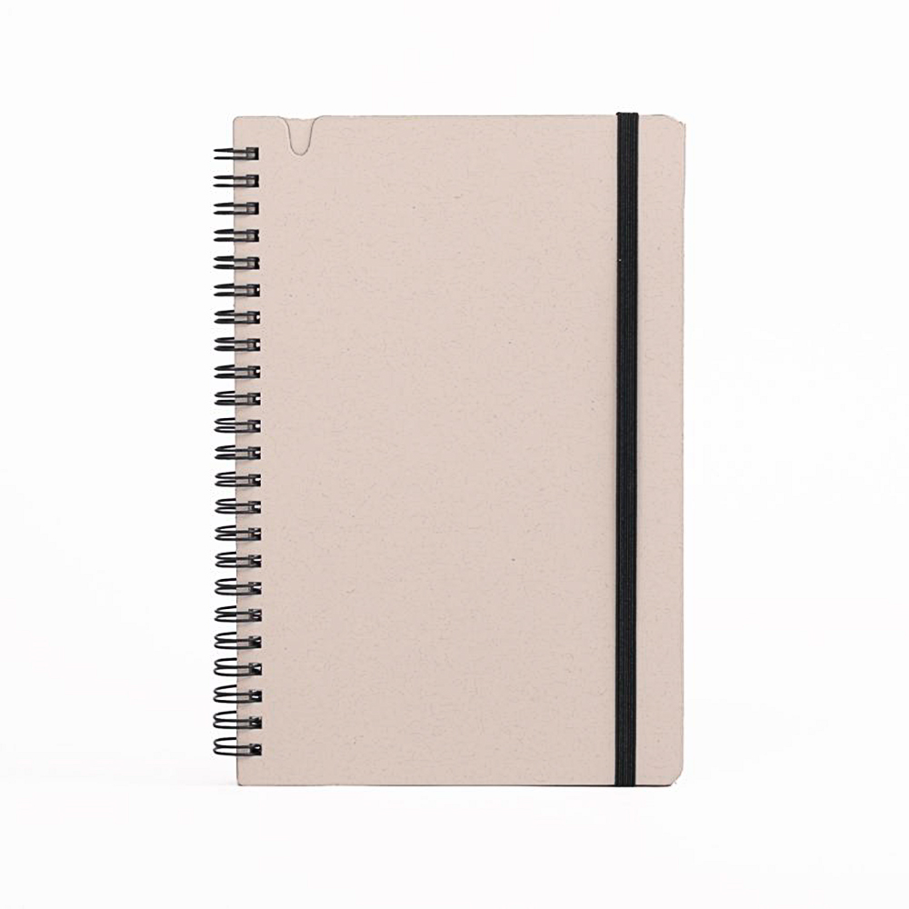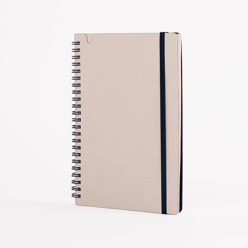 Cuenta con 70 hojas de papel blanco con leve tono gris, que mantienen la identidad natural del material reciclado. Su espiral lateral y banda elástica en color verde refuerzan visualmente su carácter ecológico y aportan practicidad para el uso cotidiano en oficinas, capacitaciones o actividades académicas. OSORNO es personalizable y perfecto para marcas comprometidas con hábitos responsables y economía circular.