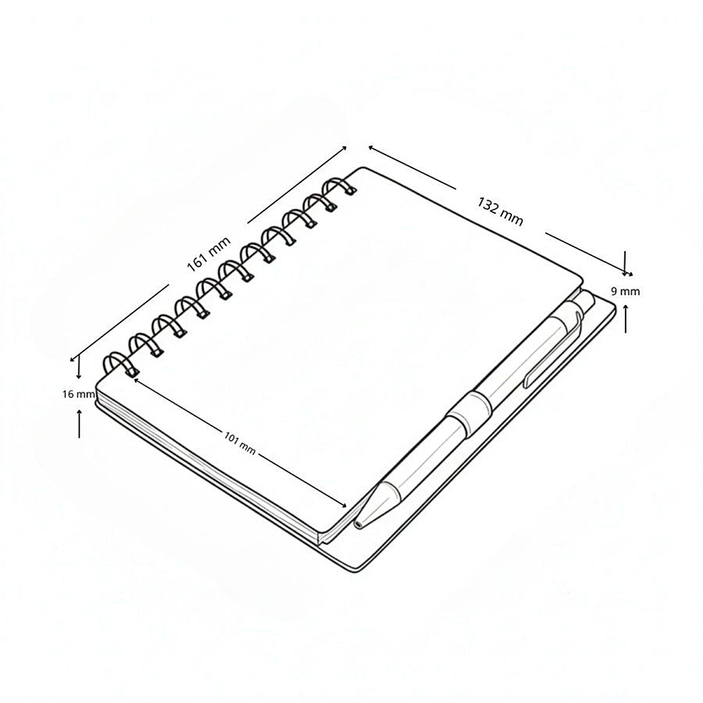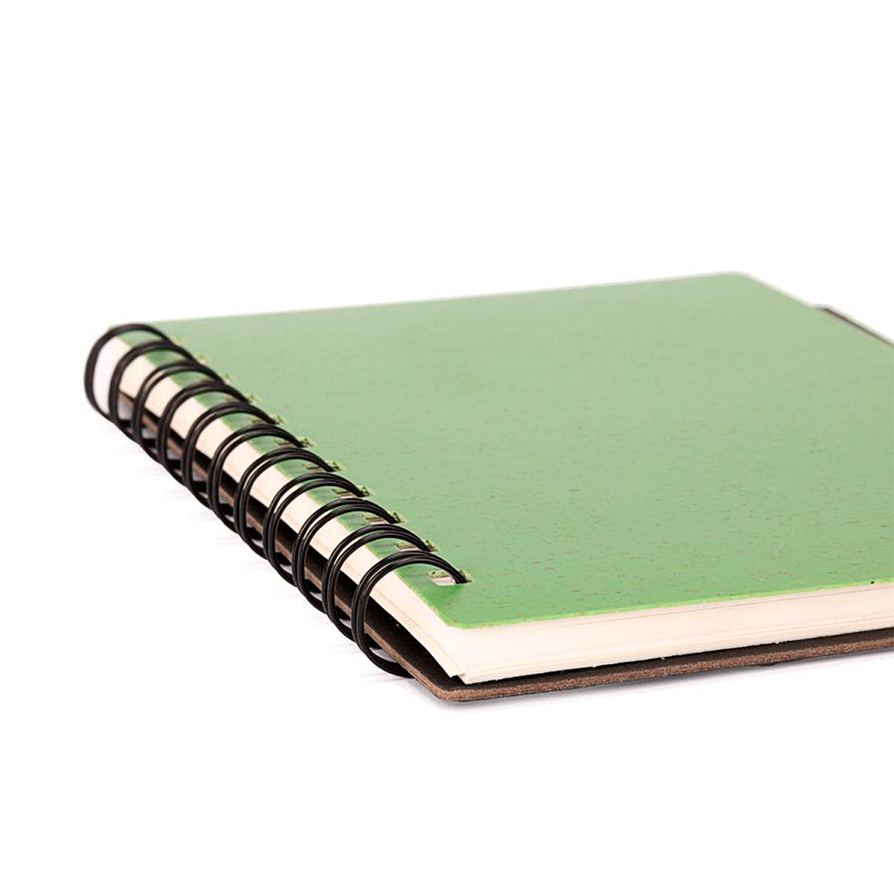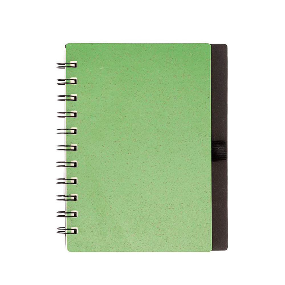 Es una libreta compacta, funcional y alineada con la sostenibilidad, ideal para reforzar la identidad de marcas con un mensaje consciente y actual. Su formato 11 × 16 cm lo hace perfecto para llevar a todas partes, mientras que sus tapas flexibles elaboradas con fibra de trigo ofrecen una alternativa ecológica al plástico tradicional, aportando ligereza y una textura natural al tacto. Cada color está directamente relacionado con la fibra natural que originó el papel, por lo que cada pieza es única y auténtica.