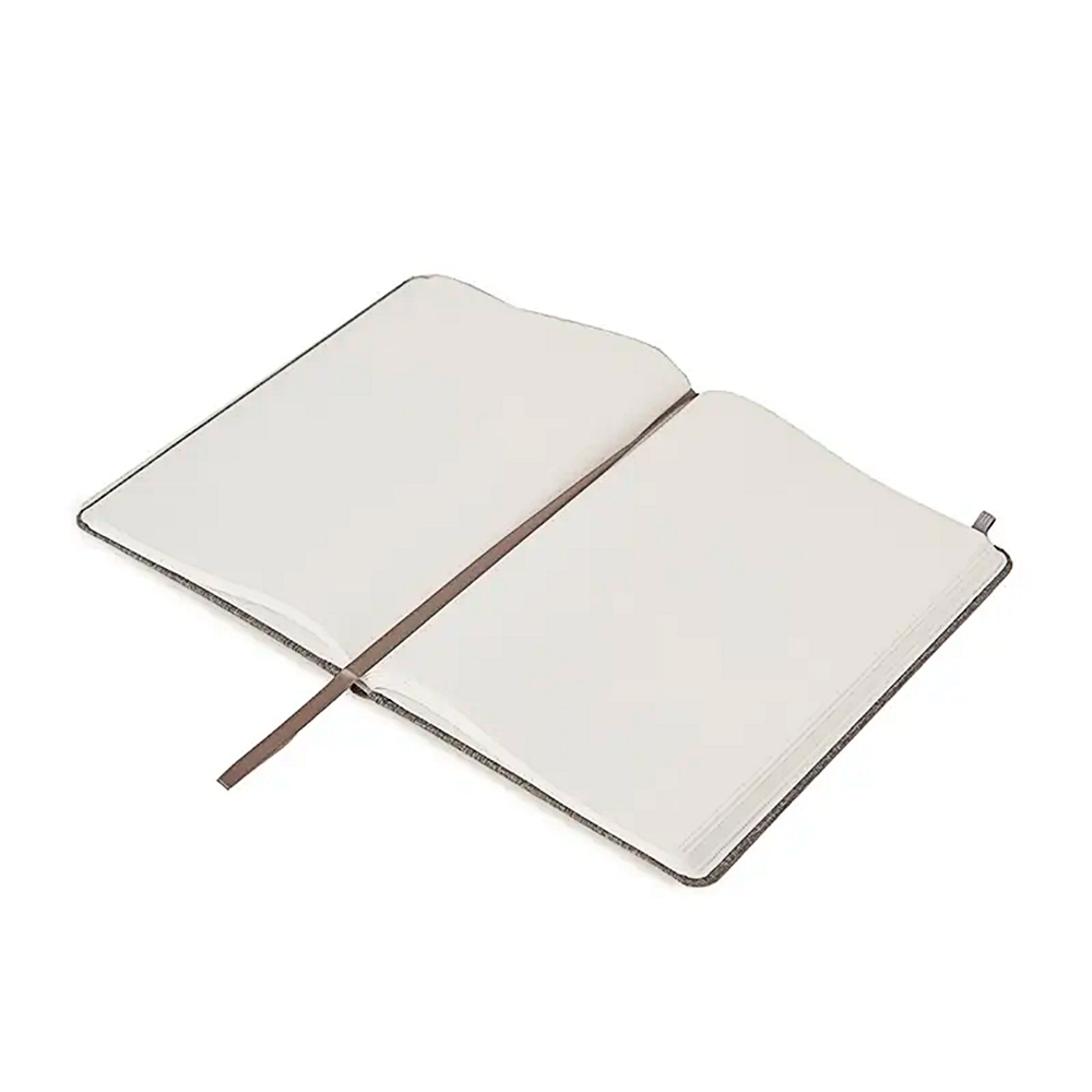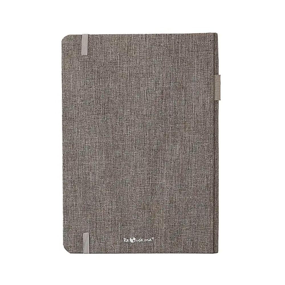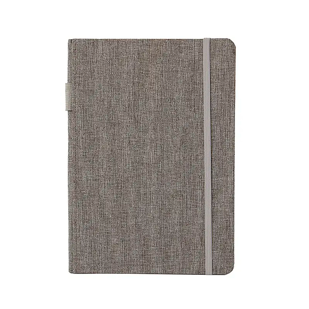 Su diseño funcional incluye banda elástica, sujetador de bolígrafo y cinta señaladora, además de un elegante logo grabado en hot stamp en la contratapa, lo que lo convierte en una excelente opción para regalos corporativos ecológicos, merchandising sostenible y branding institucional con alto valor percibido.