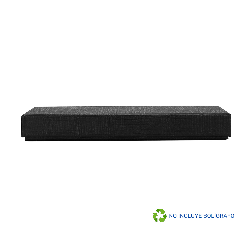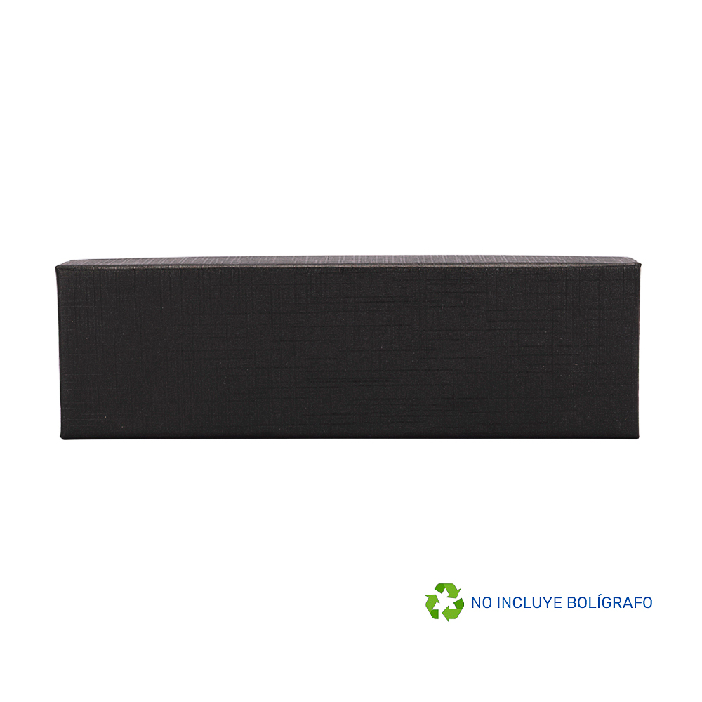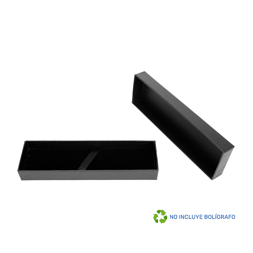 Elegante presentación diseñada para destacar bolígrafos corporativos y regalos empresariales. Fabricado en cartón forrado color negro, cuenta con una tapa protectora que resguarda el contenido y aporta una presentación sobria y profesional.
