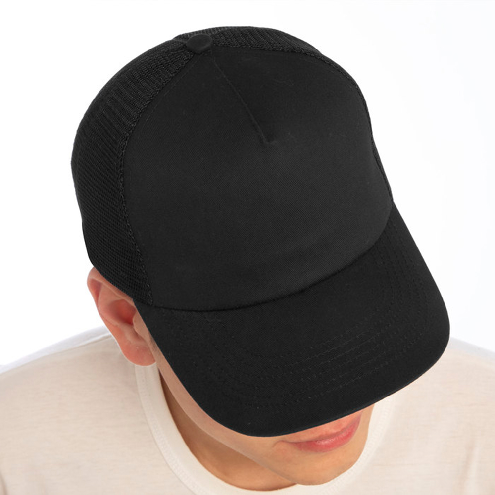Gorra TRAC corporativa de 5 paneles con algodón y malla poliéster, cómoda, ajustable y perfecta para personalizar con tu marca.