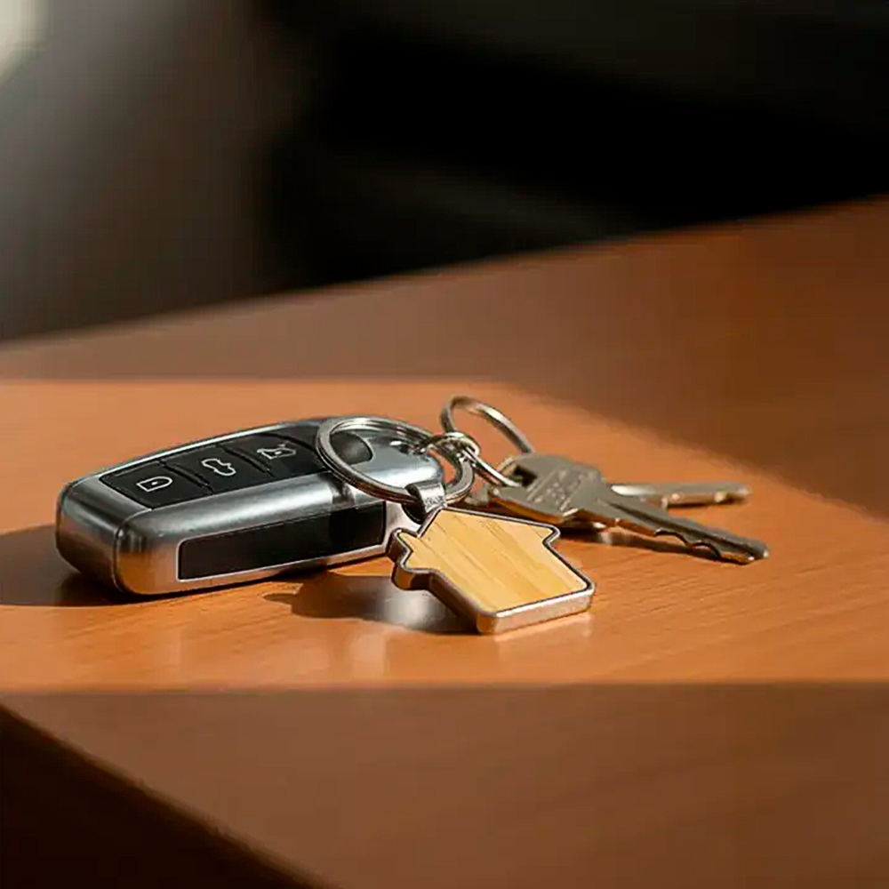 Accesorio promocional elegante y significativo, ideal para inmobiliarias, constructoras y empresas del rubro inmobiliario. Su diseño con silueta de casa transmite conceptos de hogar, confianza y estabilidad, convirtiéndolo en un regalo corporativo estratégico para acciones de branding y fidelización de clientes.