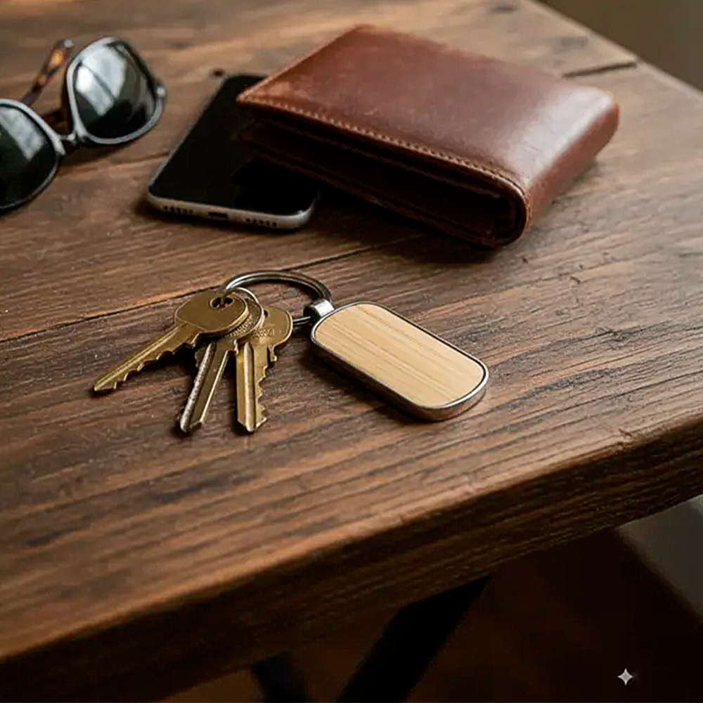 Fabricado en aleación de zinc con bambú natural, combina resistencia y conciencia ecológica. Incorpora anilla metálica para llaves, garantizando durabilidad y comodidad en el uso cotidiano. Es perfecto como regalo corporativo personalizado, merchandising institucional y campañas publicitarias orientadas a la sustentabilidad.