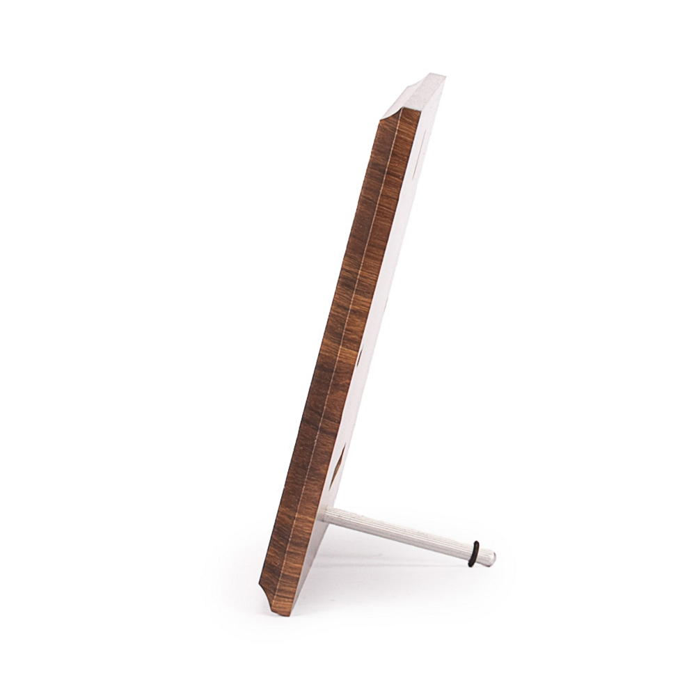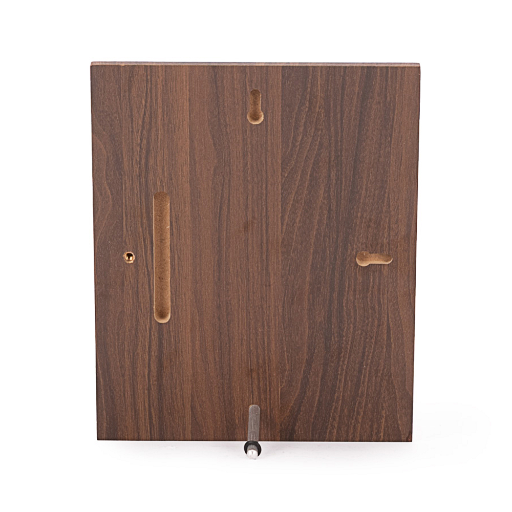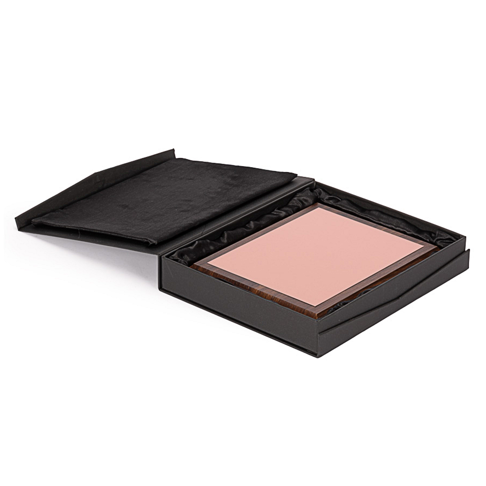 Diseñada para exhibición vertical u horizontal, incorpora soporte metálico y orificios posteriores que facilitan su instalación. Se presenta en una caja de cartón forrado negro con cierre imantado, interior acolchado con espuma y tela poliéster satinado negro, asegurando protección y una entrega impecable. La placa incluye film plástico removible para preservar su acabado hasta el momento de uso.