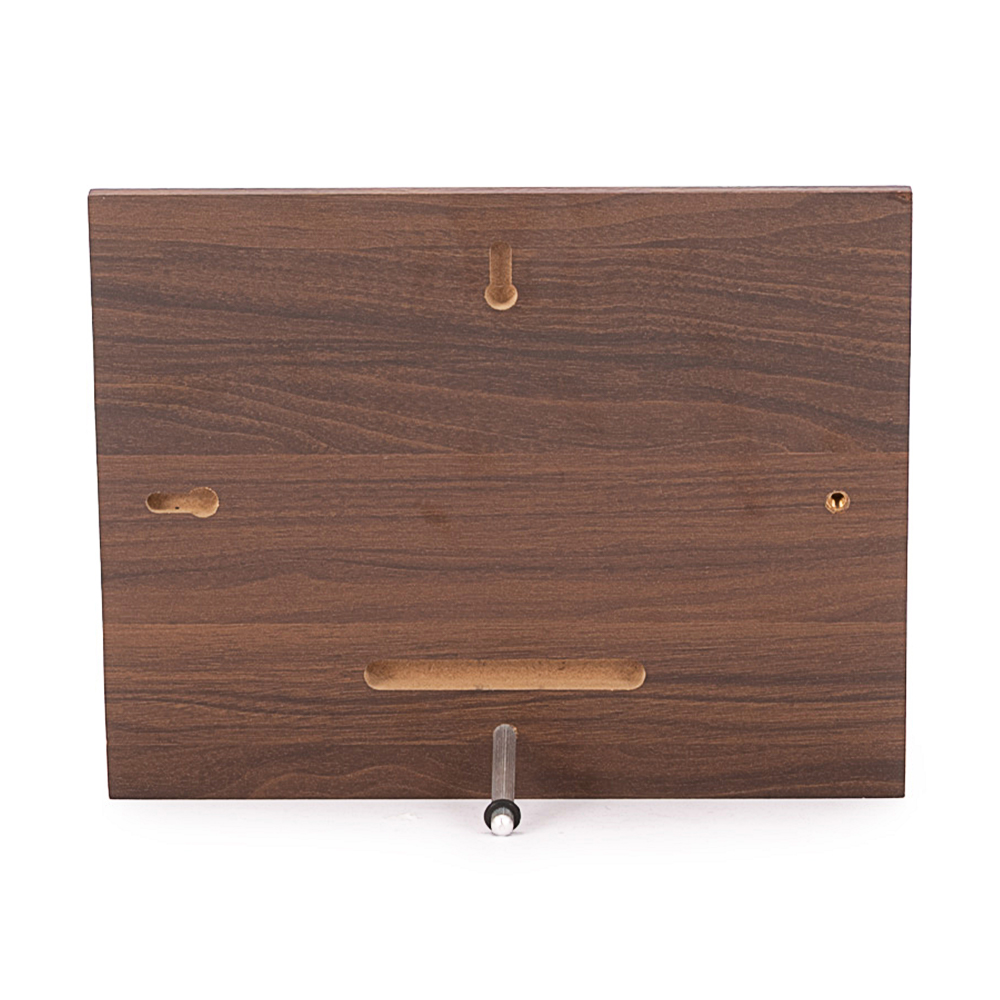 Solución elegante y profesional para reconocimientos corporativos, premiaciones institucionales y homenajes empresariales. Su placa metálica color cobre, montada sobre una base rectangular de madera barnizada con cantos troquelados, entrega una presentación sobria y de alto valor percibido, ideal para destacar logros, trayectorias y aniversarios corporativos.