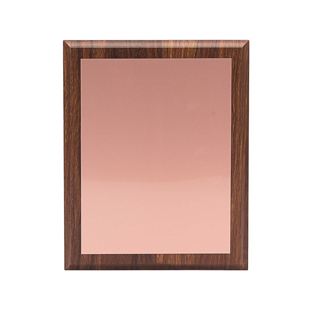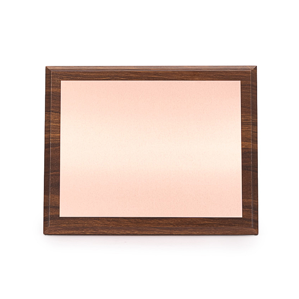 Placa galvano encobrizada con base de madera, ideal para reconocimientos corporativos elegantes y premiaciones empresariales.