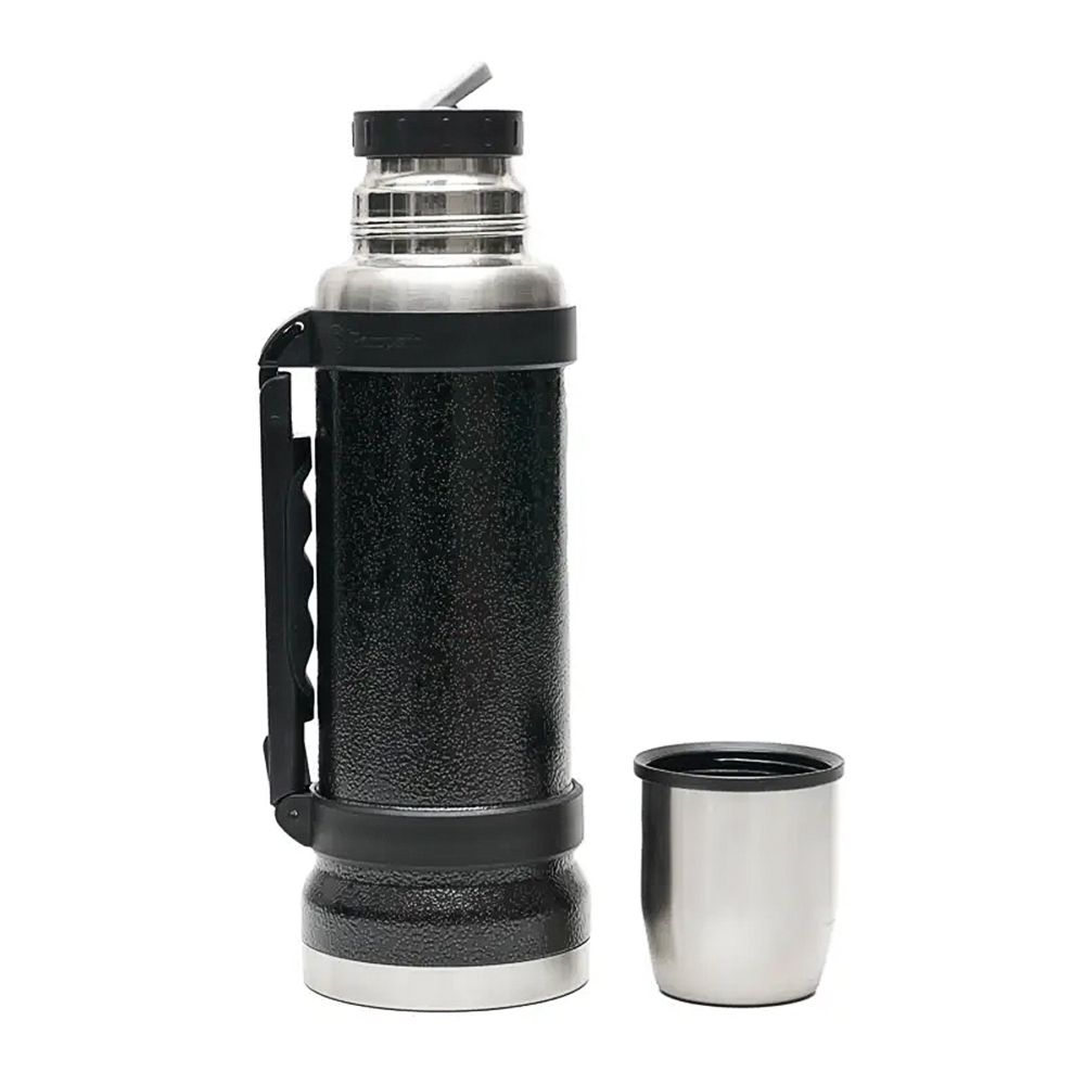 Termo de acero inoxidable 1,1 L con doble pared aislante, tapa taza y sistema antiderrame, ideal para regalos corporativos.