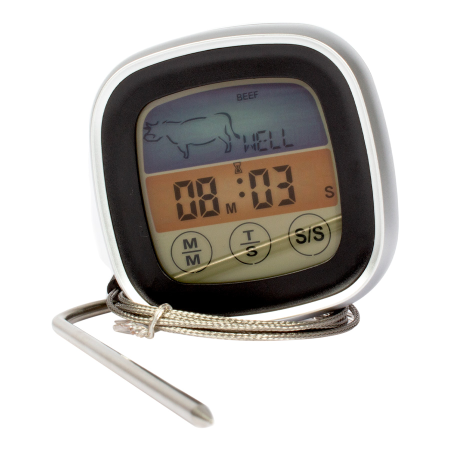 Termómetro Digital para Carne, resultados perfectos en cada cocción, este accesorio es el aliado ideal para regalos corporativos funcionales y con estilo.  Cuenta con timer y funciones en °C o °F. Resistente al calor hasta 250°C (482°F) y es de práctico tamaño compacto.