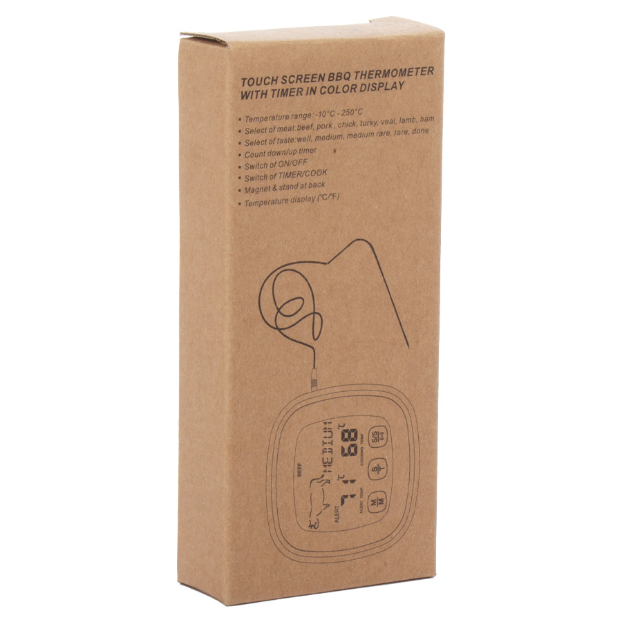 Cabe destacar, que tiene una alta resistencia térmica, soportando hasta 250°C (482°F), además incluye un timer y permite la lectura en °C o °F para mayor versatilidad. Tiene un acabado elegante en color negro y con detalles plateados, esta hecho de plástico y acero de buena calidad. Viene en una práctica presentación en un caja de cartón natural con las instrucciones impresas. Este termómetro combina funcionalidad y diseño, convirtiéndose en un regalo práctico y sofisticado para clientes o colaboradores. Ideal para campañas promocionales relacionadas con gastronomía, hogar o estilo de vida saludable.