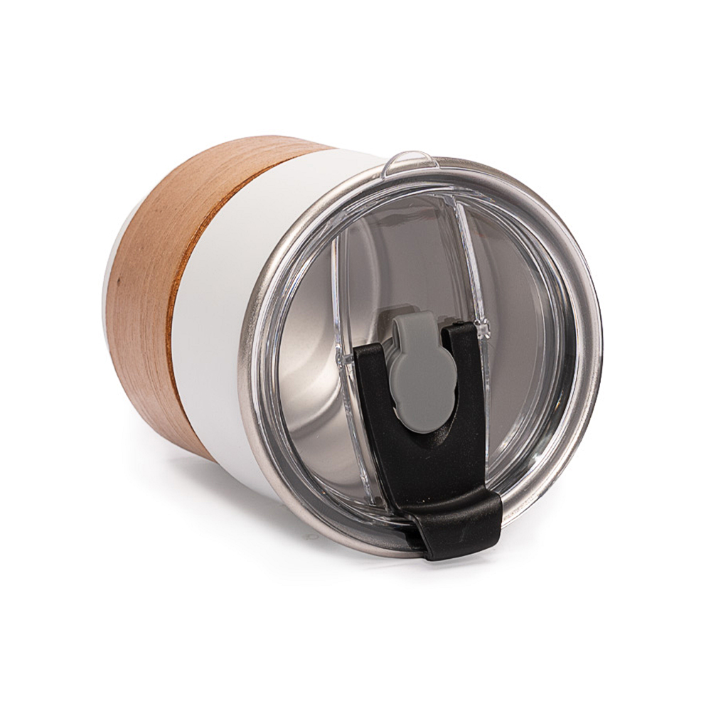 Vaso térmico CAMP de 300 ml con bombilla y grip de madera, ideal como regalo corporativo sustentable.